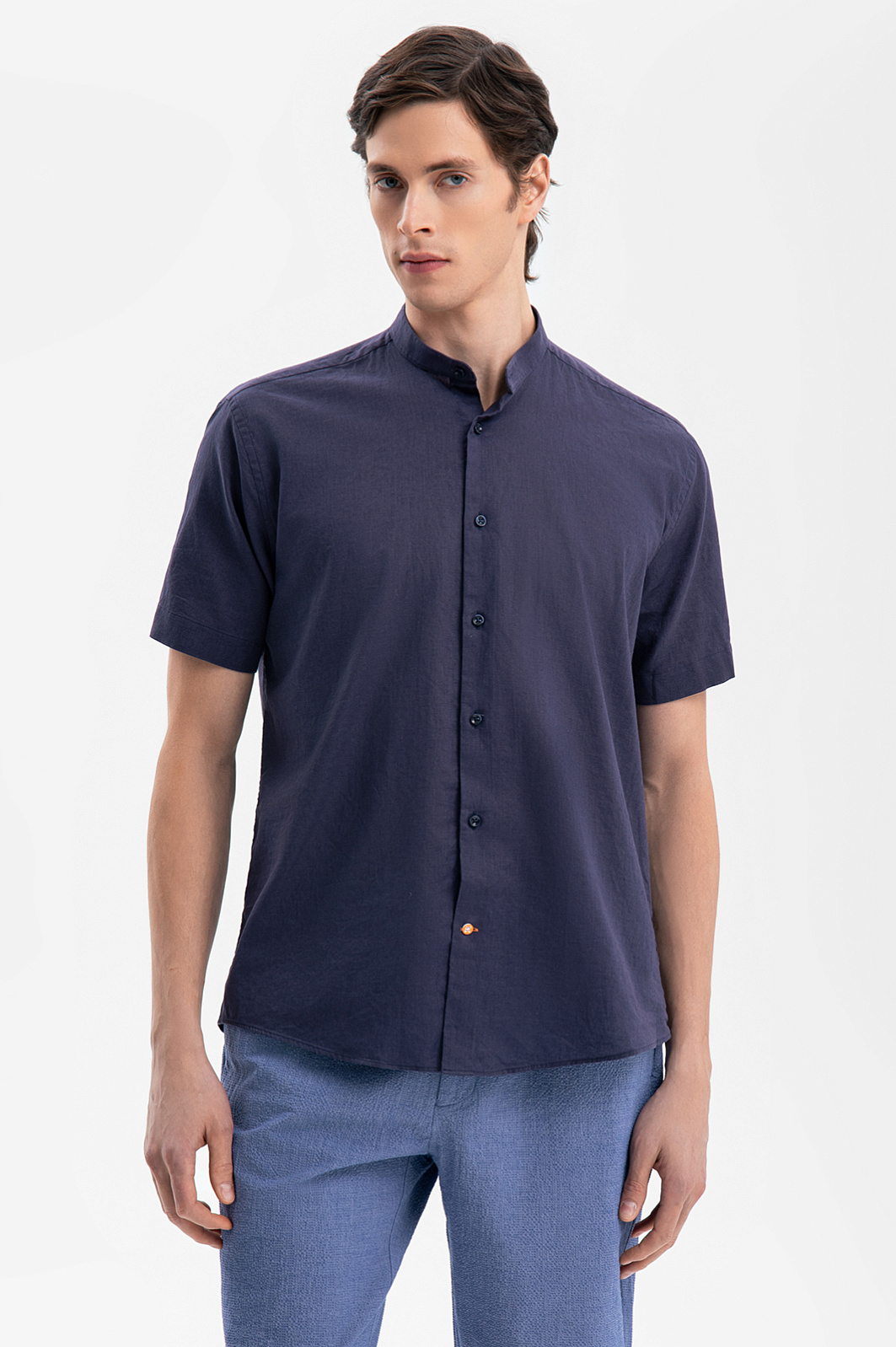 Сорочка с коротким рукавом из австрийской ткани Getzner, цвет синий, цена 6 990 руб., код 269335 - купить в Москве в интернет-магазине KANZLER