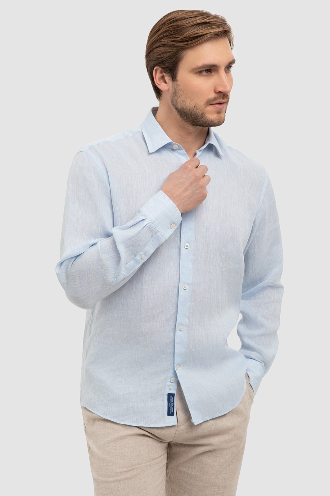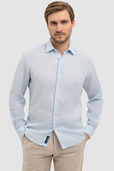 Сорочка изо льна, лимитированная коллекция, цвет голубой, цена 5 990 руб., код 267382 - купить в Москве в интернет-магазине KANZLER