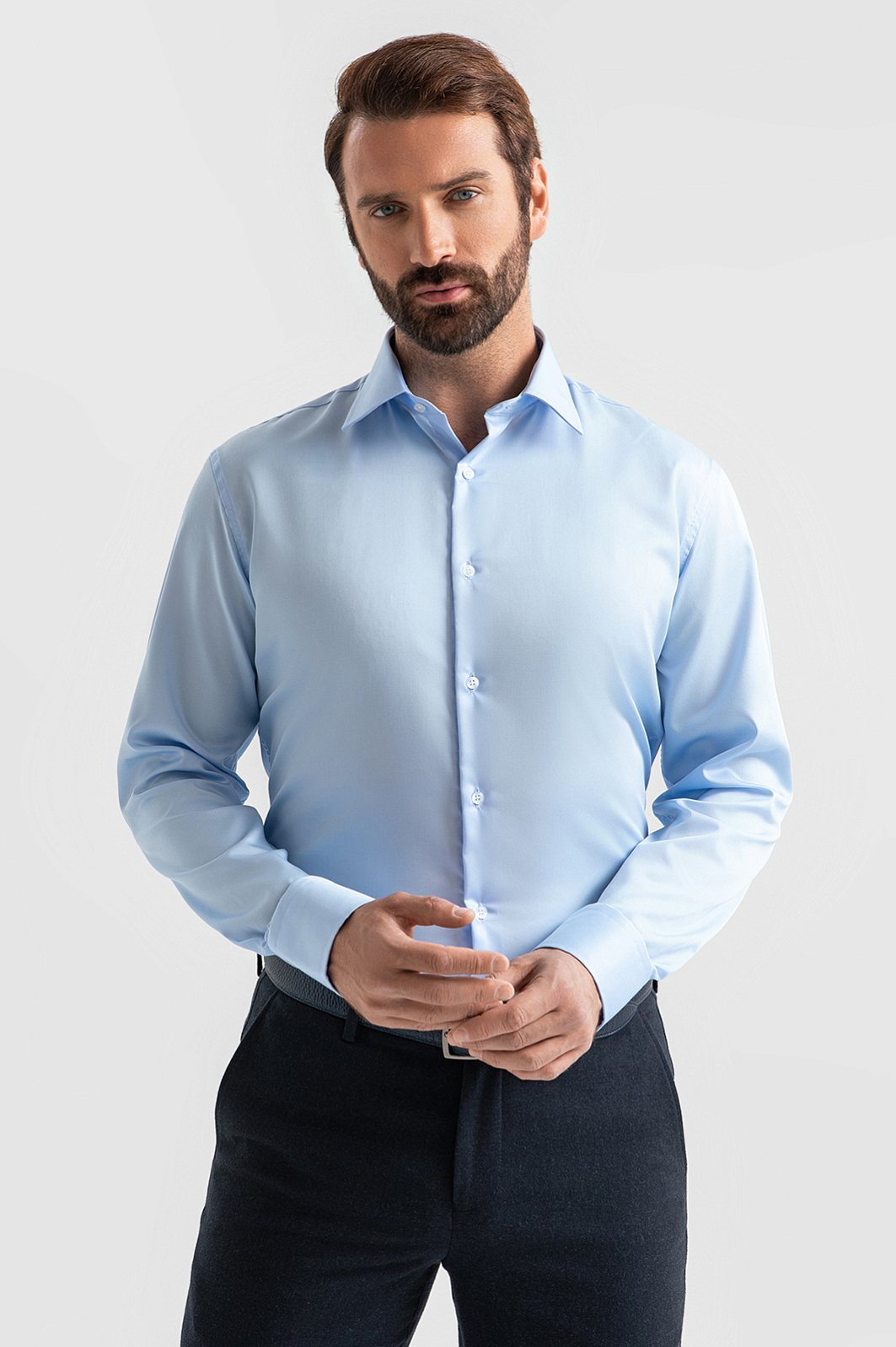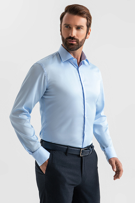 Сорочка из хлопка, легкая в уходе, цвет голубой, цена 6 990 руб., код 268299 - купить в Москве в интернет-магазине KANZLER
