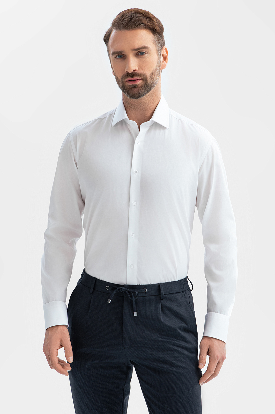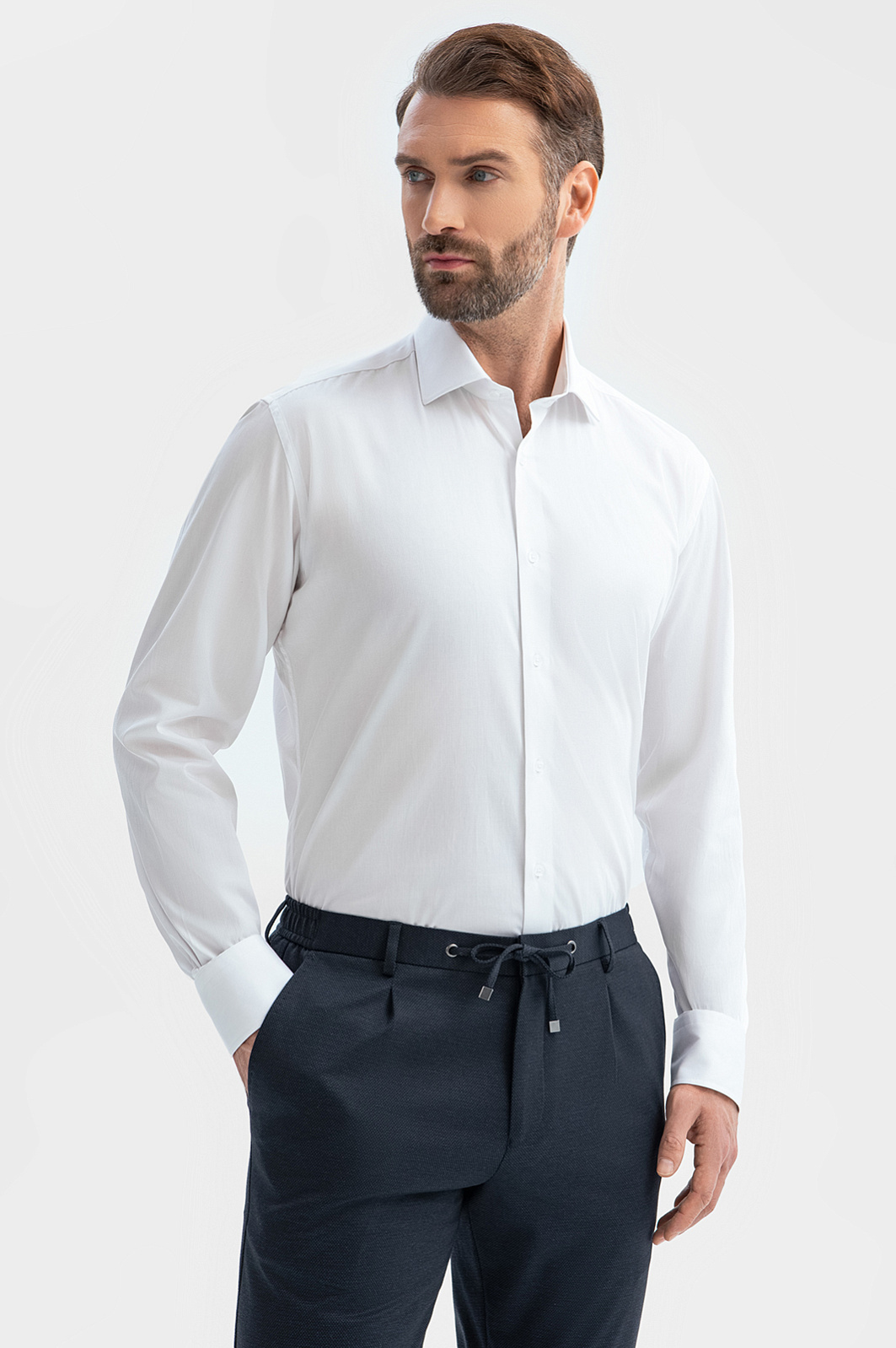 Классная сорочка. Белый цвет универсален, материал приятный и устойчивый к загрязнениям, рубашка выглядит аккуратно даже после длительной носки.