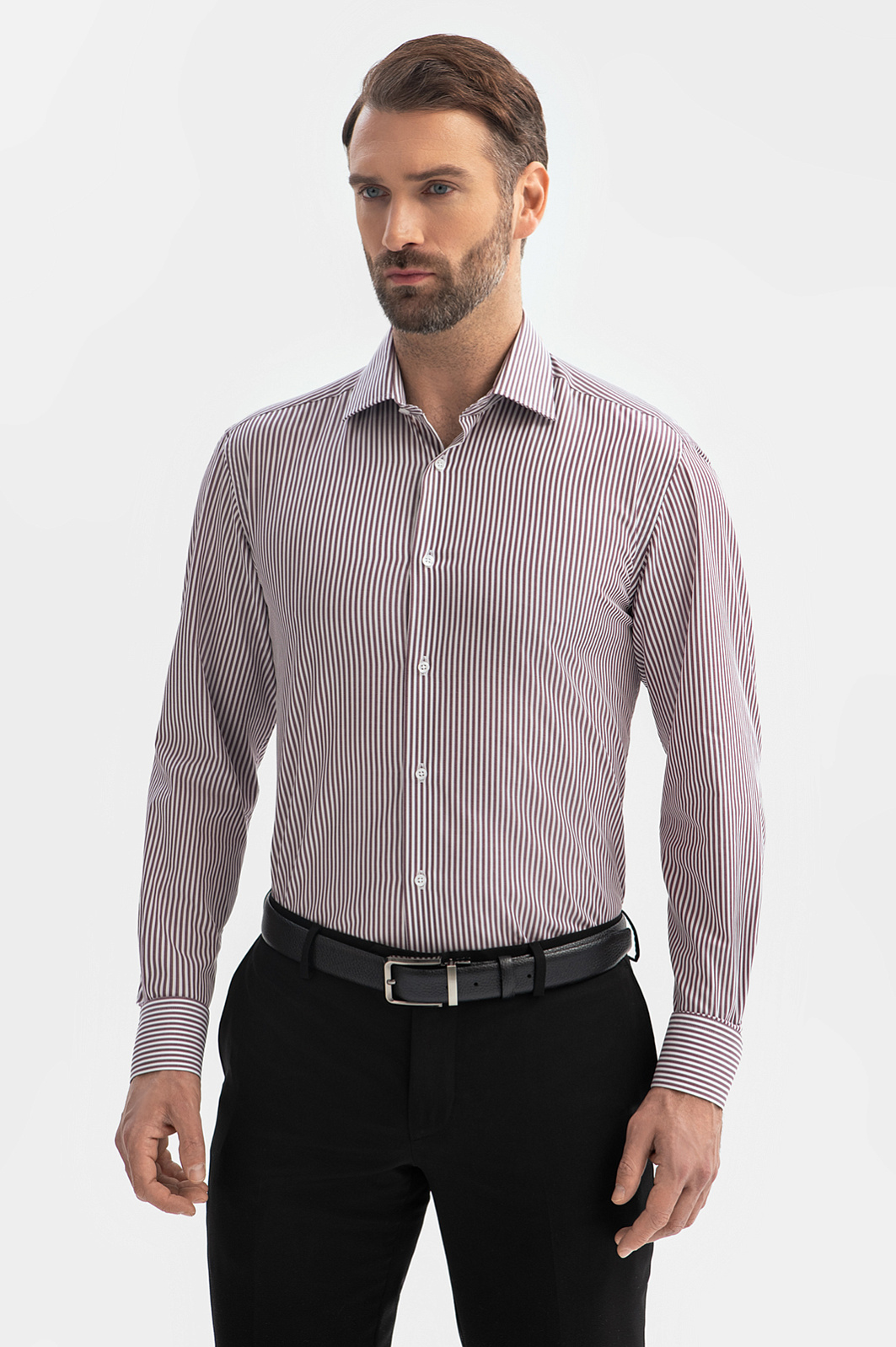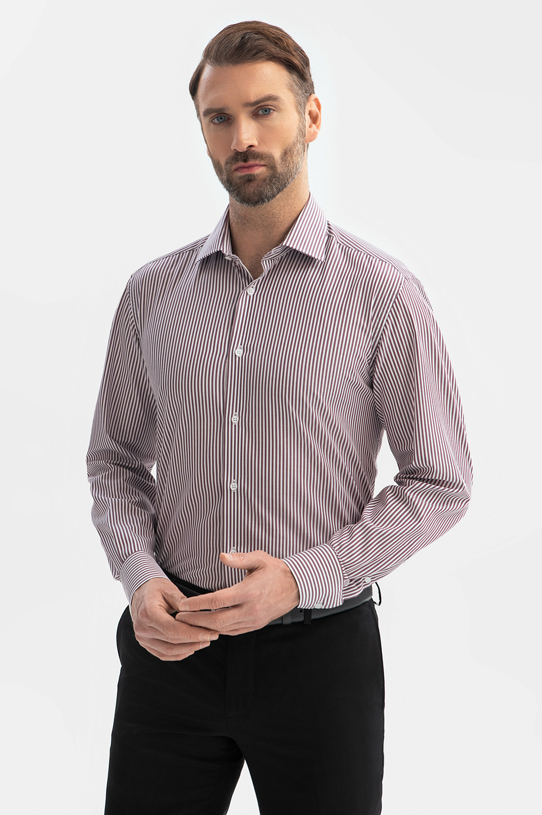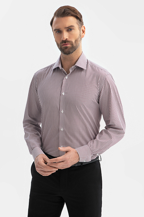 Сорочка из хлопка в полоску, цвет бордовый, цена 6 990 руб., код 269316 - купить в Москве в интернет-магазине KANZLER