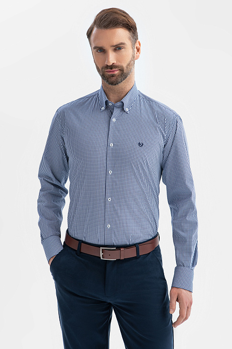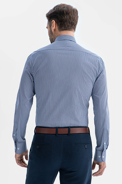 Сорочка из хлопка в клетку, синий цвет, цвет синий, цена 5 990 руб., код 269323 - купить в Москве в интернет-магазине KANZLER