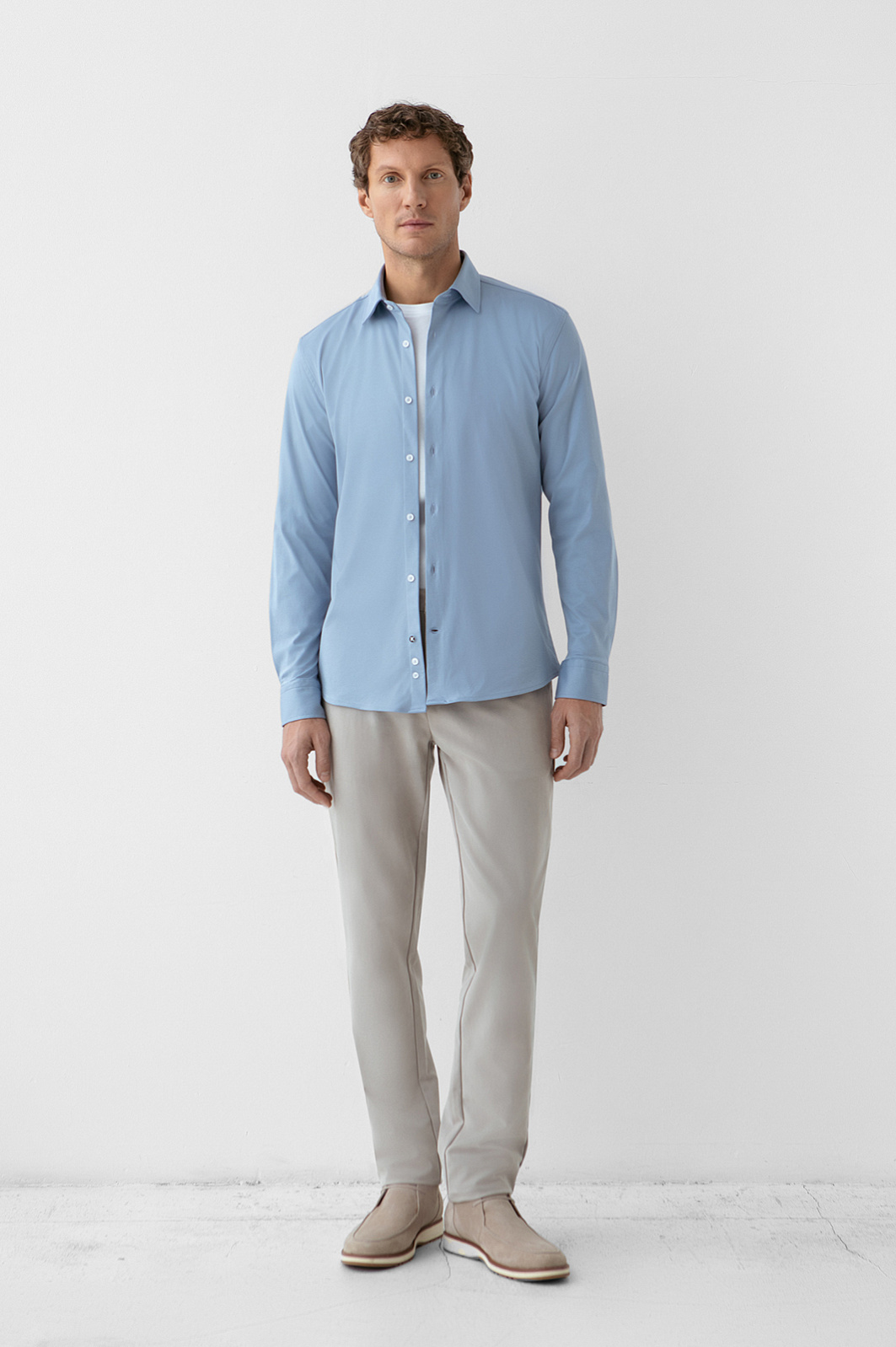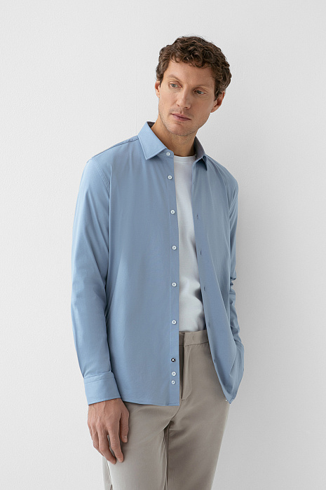 Сорочка из трикотажной хлопковой ткани, цвет голубой, цена 8 990 руб. - купить в интернет-магазине KANZLER