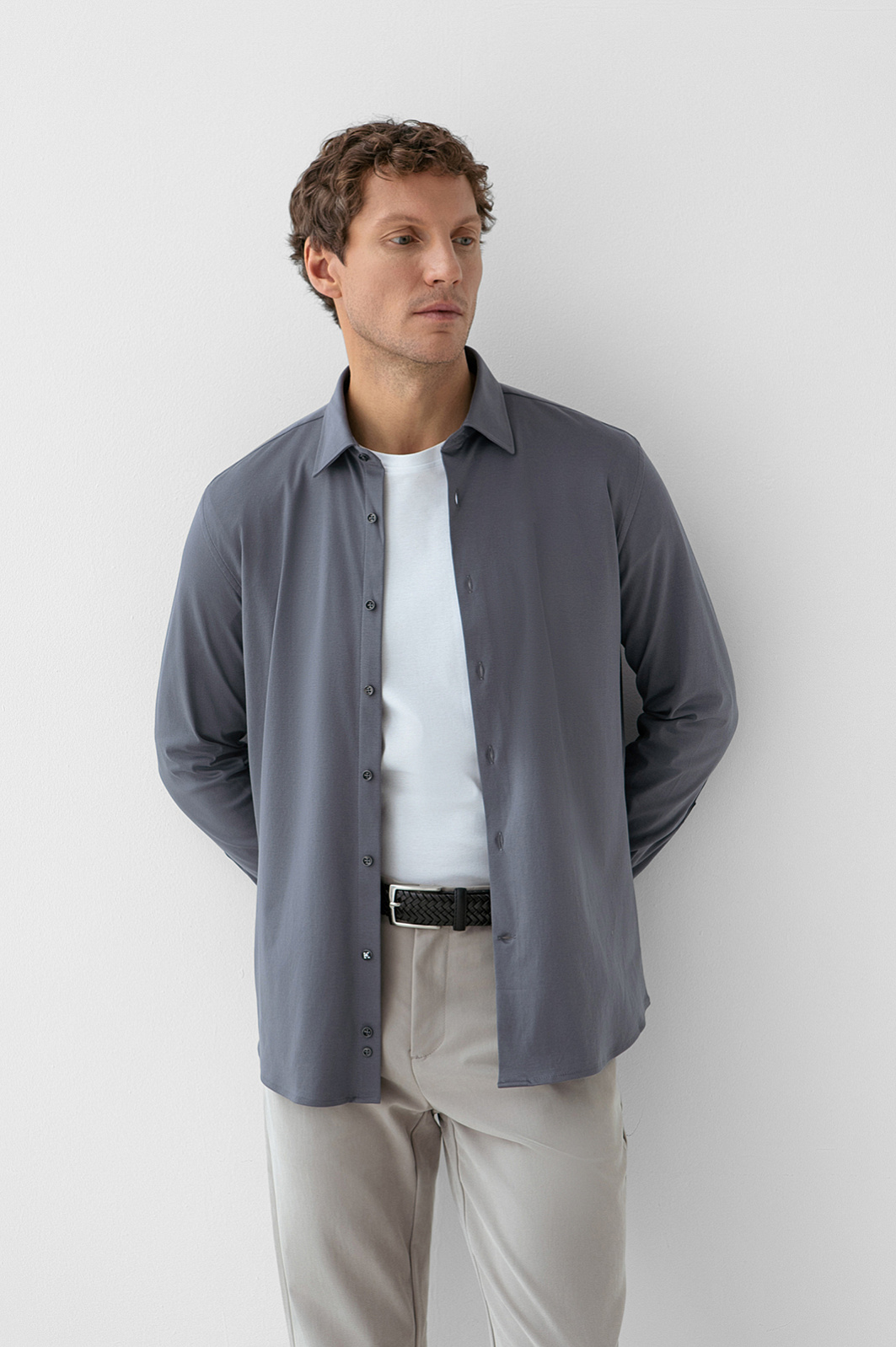 Сорочка из трикотажной хлопковой ткани, цвет серый, цена 8 990 руб. - купить в интернет-магазине KANZLER