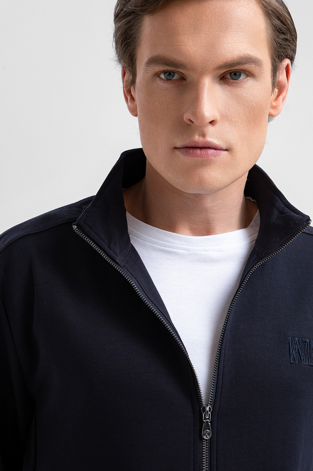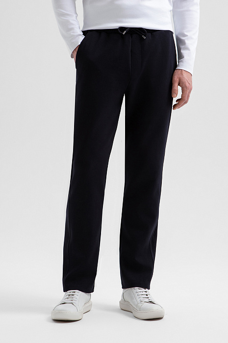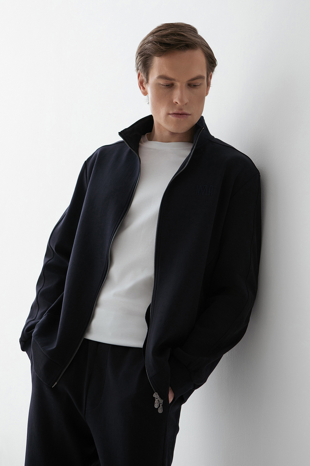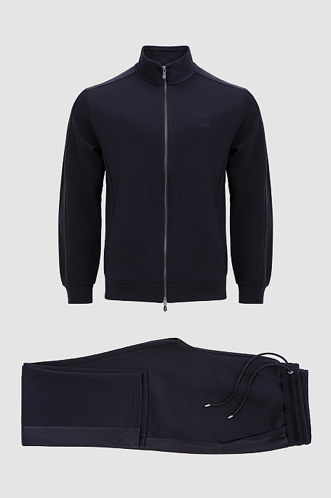 Тёмно-синий костюм KANZLER принадлежит и миру спорта, и уличному стилю. Миссия выполнима: в нём можно тренироваться, гулять и предаваться ничегонеделанию дома. Комплект состоит из толстовки на молнии и свободных брюк на кулиске. Мягкий трикотаж сочетается с вставками из полиэстера, которые подчёркивают современный характер костюма и делают его структуру выразительной. В составе трикотажа — натуральный гипоаллергенный хлопок, который поддерживает ощущение свежести и сохраняет естественное тепло тела. Добавление полиэстера и эластана придаёт материалу прочность и пластичность.