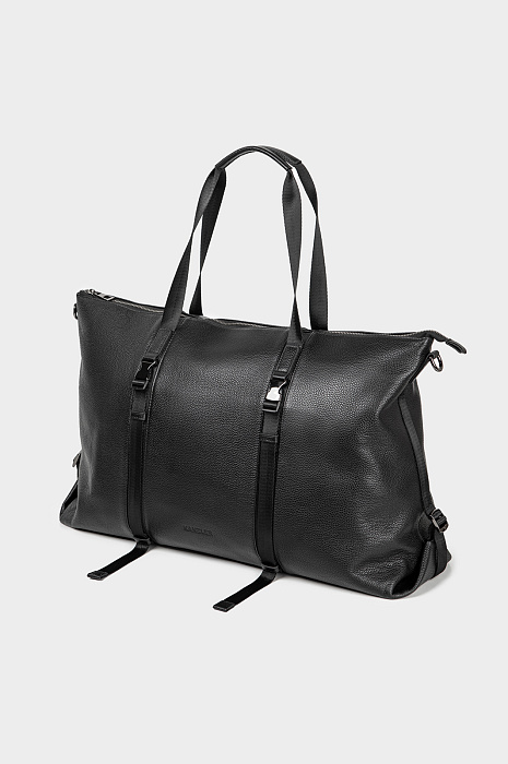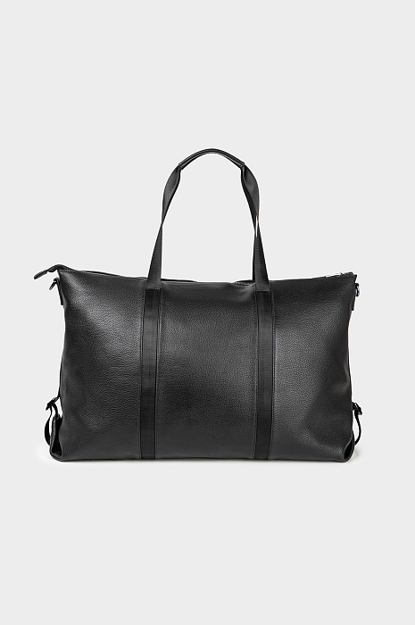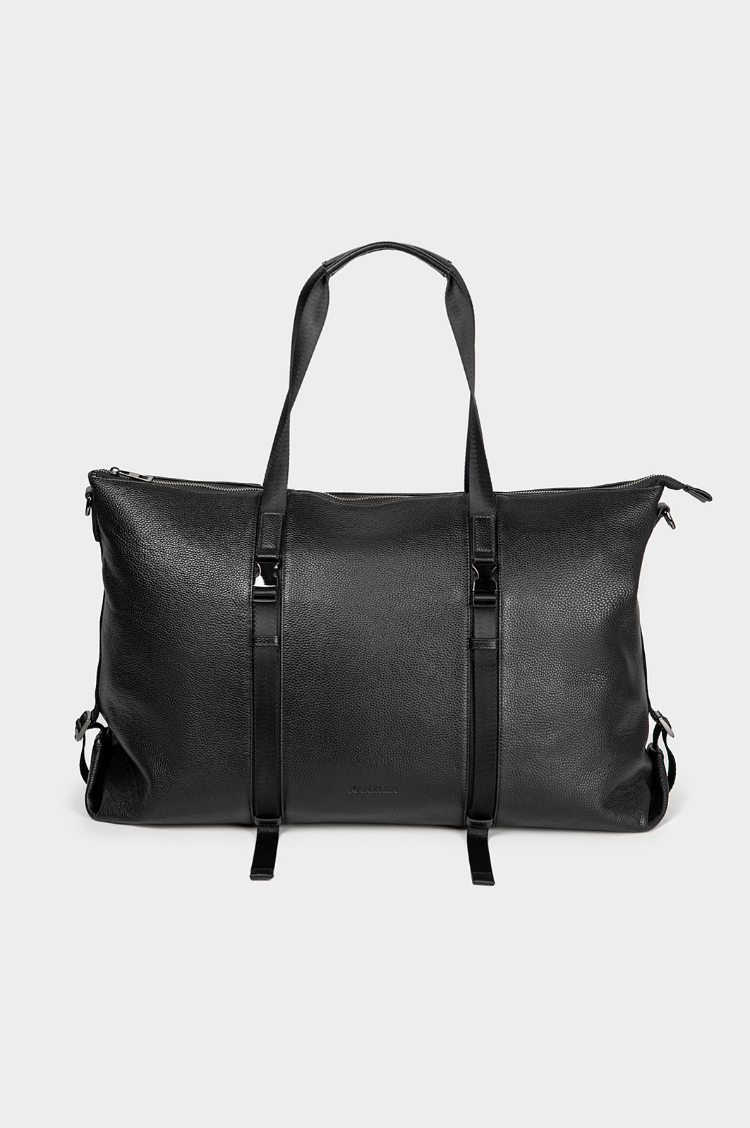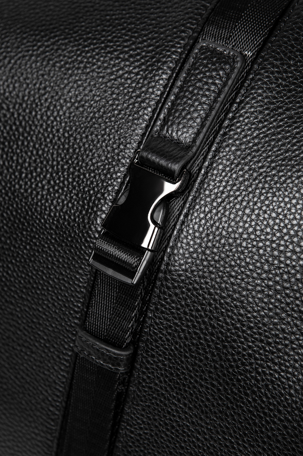 Роскошная черная дорожная сумка KANZLER из качественной зернистой кожи — идеальное сочетание современного городского стиля и функциональности. Она отлично подходит для поездок на выходные или деловых визитов: в ней удобно разместятся личные вещи, одежда, ноутбук и документы. Основная часть сделана из кожи превосходной выделки, которая придаёт аксессуару респектабельность. А текстильные ремни с металлическими пряжками добавляют лёгкости и актуальности. Длинные ручки и съемный широкий ремень позволяют носить дорожную сумку в руке или на плече.