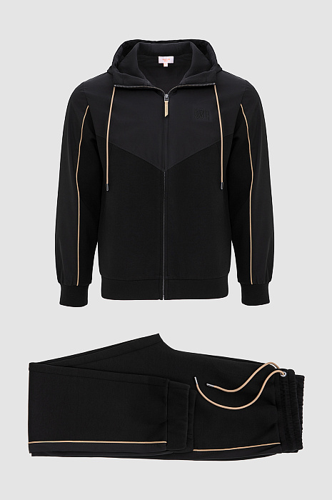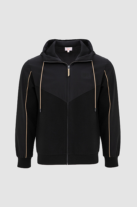 Чёрная толстовка KANZLER предназначена для спортивных занятий и непринуждённого отдыха. Для создания цельного костюма её можно дополнить брюками KANZLER из такой же ткани. Мягкий трикотаж гармонично дополнен деталями из полиэстера, которые придают вещи структурированность и подчёркивают чистые линии кроя. Контрастные бежевые элементы служат деликатными акцентами. Удобная молния с двумя бегунками позволяет открывать застёжку с любой стороны. Толстовка сшита из смесового хлопка. Натуральные гипоаллергенные волокна поддерживают ощущение свежести и сохраняют естественное тепло. Добавление полиэстера и эластана придаёт материалу прочность и пластичность.