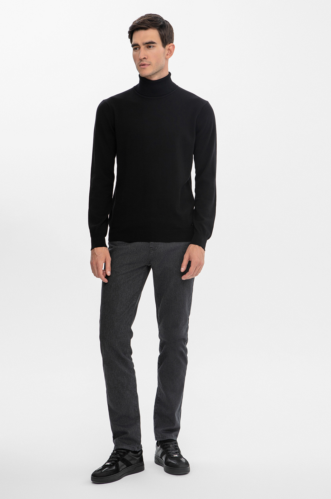 Черная водолазка KANZLER из шерсти — обязательный элемент мужского гардероба. Классическую модель любят за простоту, удобство, элегантность и практичность. Она идеально сочетается с неформальными пиджаками, кардиганами и верхней одеждой, отлично дополняет разные цвета и фактуры. Прилегающий силуэт подчеркивает достоинства мужской фигуры. Эластичный трикотаж гладкой вязки не сковывает движений. Материал создан из мягкой натуральной шерсти, которая поддерживает оптимальную температуру и не препятствует воздухообмену.
