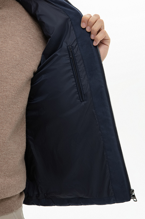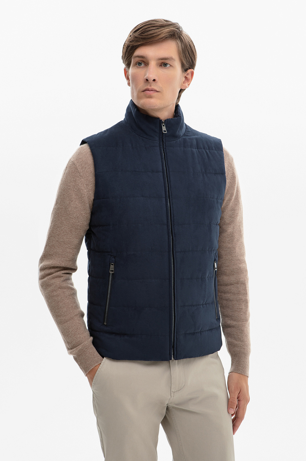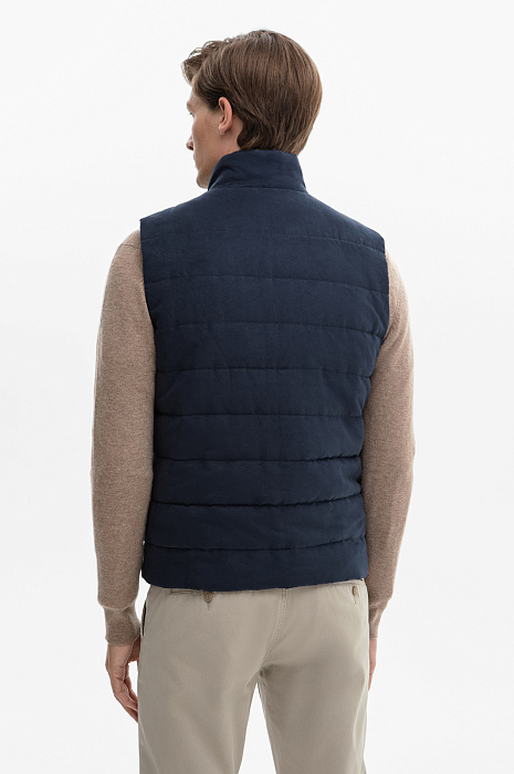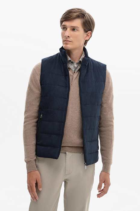 Жилет из алькантары утепленный стеганый демисезонный, цвет синий, цена 12 990 руб., код 268571 - купить в Москве в интернет-магазине KANZLER